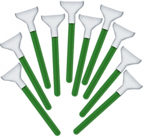 1.0X VSWABS - GRÜN - für Vollformat-Sensoren, verwendbar mit allen Visible Dust Reinigungslösungen Diese Swabs sind ein hervorragendes Mittel für eine gründliche Sensornassreinigung von Vollformat-Kameras mit engem Gehäuse (z.B. Nikon D3). Sie sind mit allen Reinigungslösungen aus dem Sortiment von VisibleDust kompatibel. Die trapezförmigen VSwabs sind eine Weiterentwicklung der quadratischen Swabs. Die besondere Form des Swabs bietet mehrere Vorteile. Es erleichtert das Manövrieren im engen Kameragehäuse. Gleichzeitig verringert sich die Gefahr, Staubpartikel von den Gehäusewänden abzustreifen, die dann auf den Sensor fallen könnten. Auch die Reinigungsleistung verbessert sich. Durch die Trapezform verteilt sich der Druck gleichmäßig auf die gesamte Reinigungsfläche des Swabs. Das bewirkt eine ebenmäßigere, streifenfreie Reinigung der Sensoroberfläche.