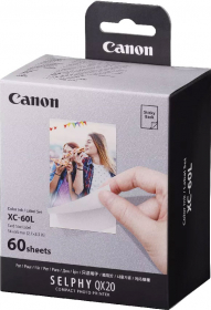 Das Canon XC-60L Tinten-/Papier-Kit wurde für den SELPHY QX20-Drucker entwickelt und enthält 60 Blatt selbstklebendes Fotopapier, die in sechs 10er-Packs aufgeteilt sind.