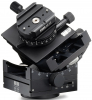 Die rechtwinkligen Nivellierwiegen, jede mit einem Neigungsbereich von +/- 30°, haben ihre Drehachsen nahe dem optischen Zentrum der Kamera.