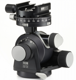 Ein weiteres bemerkenswertes Merkmal sind die separaten 360°-Schwenkvorrichtungen an der Ober- und Unterseite des Kopfes. Die untere Vorrichtung dient zum Ausrichten der Kamera, während die obere Vorrichtung präzise Schwenks und Drehverbindungen erleichtert. Zwei Wasserwaagen, die im 90°-Winkel unter der oberen Vorrichtung für die Panoramaeinstellung angeordnet sind, sind ausreichend sichtbar, um eine effektive Nivellierung auch von einem niedrigen Standpunkt aus zu erleichtern. Dieser Kopf ist mit Kameraplatten des klassischen Arca-Swiss-Typs oder des neueren Arca-Swiss MonoballFix-Typs kompatibel.